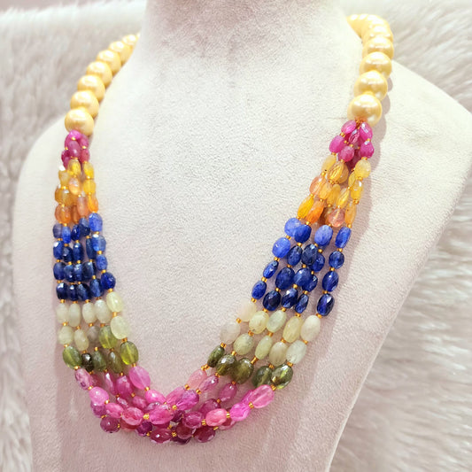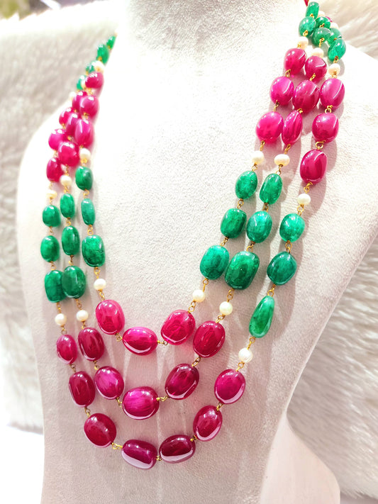Ruby Opaque Beads with Green Beryl & Fresh Water Pearls