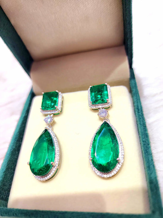 Green Syenthetic Emerald's in 925 silver with Surrounding Moissanite