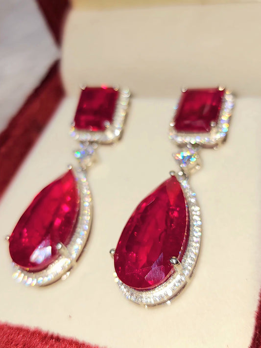 925 silver with Manmade Ruby Earings with Moissanites