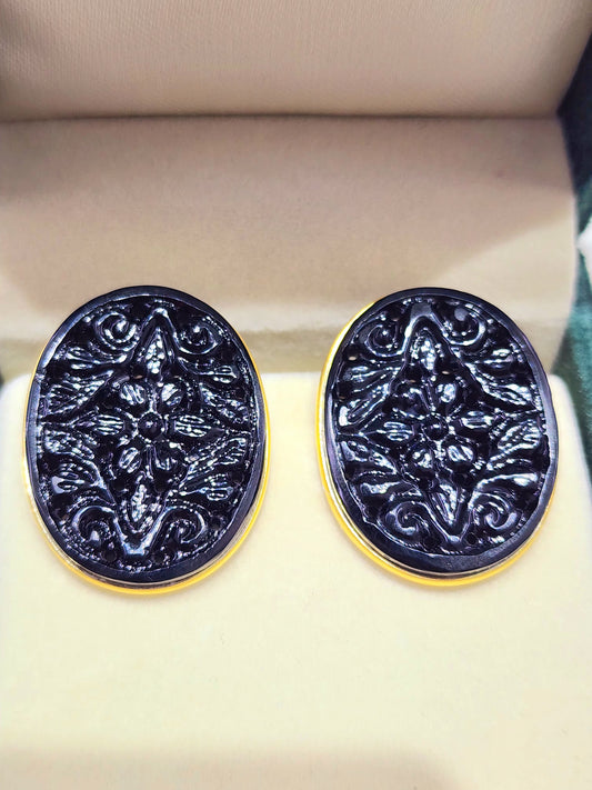 925 Silver Black Mughal Carving Earings